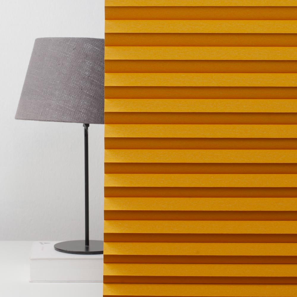 Verleihen Sie Ihrem Raum mit unserem maßgeschneiderten Plissee eine elegante und funktionale Note! Der gelbe feuchtraumgeeignete Stoff aus 100% Polyester ist pflegeleicht und lässt sich bei 30°C per Handwäsche reinigen. Das Plissee ist perl-sonnenschutz-beschichtet und bietet somit zuverlässigen Schutz vor UV-Strahlen und Hitze. Mit seiner abdunkelnden Wirkung sorgt es für eine angenehme Lichtregulierung und Privatsphäre. Die Rückseite ist zusätzlich silberbeschichtet, was zu einer neutralen Außenansicht und einer geringeren Wärmeentwicklung beiträgt. Ideal für Badezimmer, Küchen und andere Räumlichkeiten – ein perfektes Zusammenspiel aus Stil, Funktion und Komfort! Mithilfe unseres Konfigurators können Sie das Plissee an Ihre individuellen Wunschmaße anpassen. Mithilfe unseres Konfigurators können Sie das Plissee an Ihre individuellen Wunschmaße anpassen.