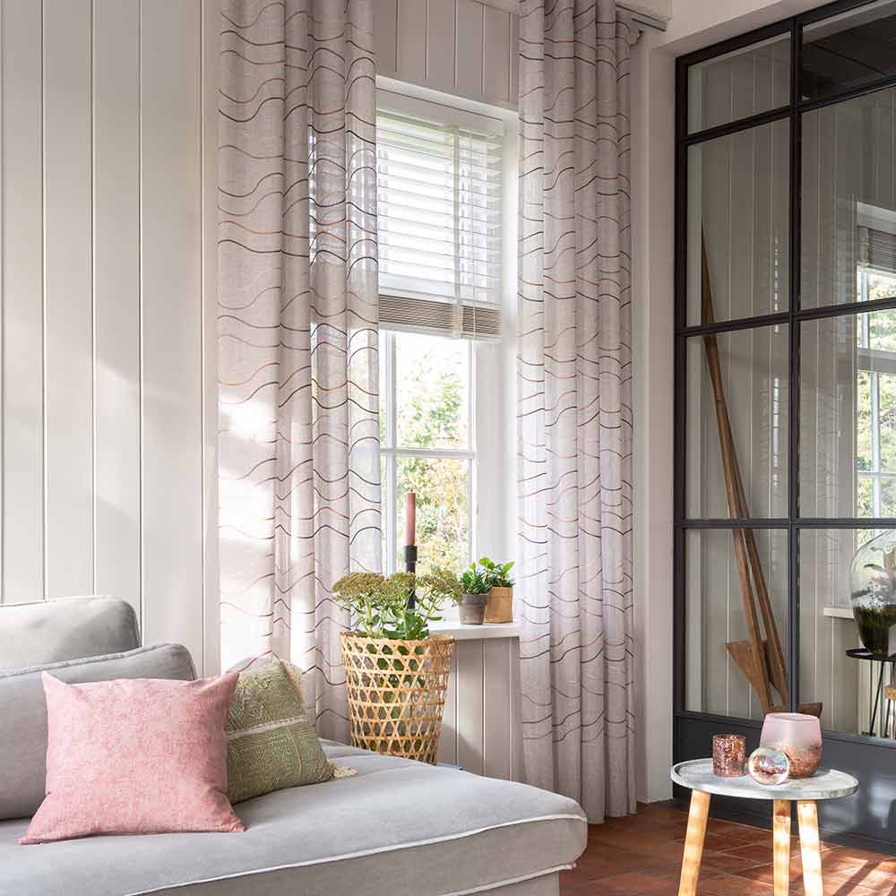 Halbtransparenter Dekostoff mit WellenIn unseren Fertigungsstätten konfektionieren wir Ihr Wunsch-Maßprodukt professionell nach Ihren Vorgaben aus hochwertigen Materialien zu einem Top-Preis!